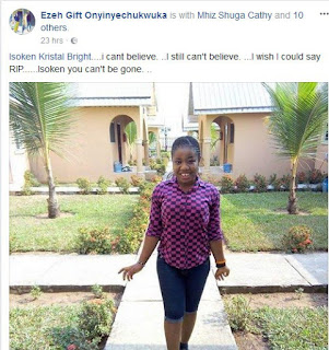 Isoken Kristal Bright, final year student of Delta State University (DELSU) and the only daughter to her mother, Mrs. Osagbogbe, a top nurse at Sapele General Hospital, Delta state died after severe menstrual pains which led to excess loss of blood.