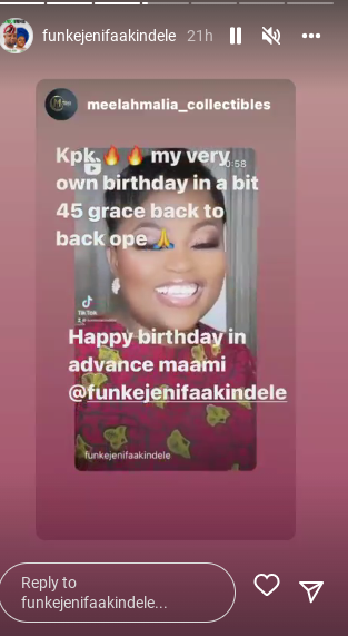 Actress Funke Akindele of Nollywood has disclosed to her followers that she would turn 45 in a few days and is extremely happy about the sensation it is providing her.