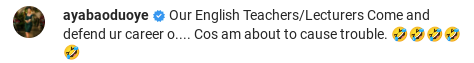 "Our English Teachers/Lecturers come and defend ur career o…cos am about to cause trouble”.