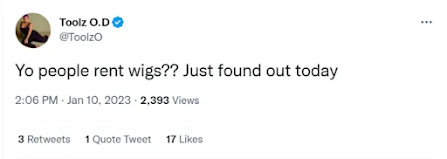 "PEOPLE RENT WIGS??" OAP, TOOLZ ASKS