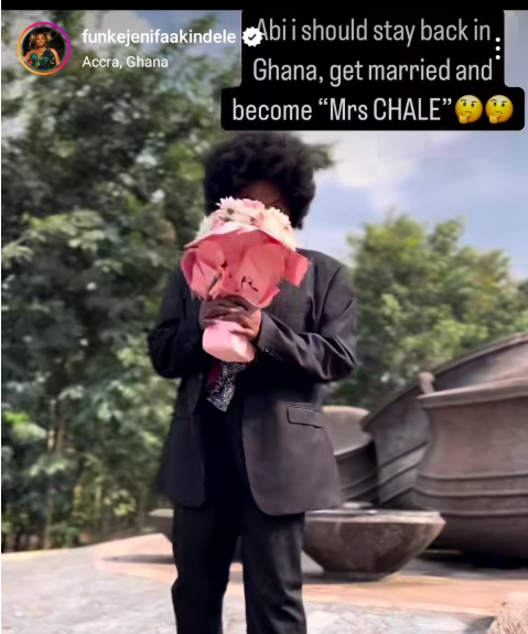 “Abi I should stay back in Ghana, get married, and become Mrs. Chale?” she wrote.